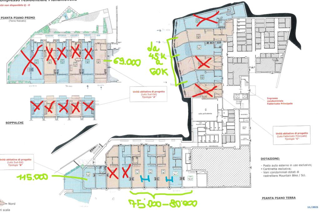 Gli immobili come evidenziato nel prospetto, possono essere uniti così da creare due unità immobiliari di piu ampia metratura.