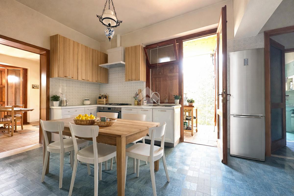 La zona giorno è composta da un ampio e luminoso soggiorno con quattro finestre e da una spaziosa cucina con porta finestra che conduce all’esterno e al giardino.