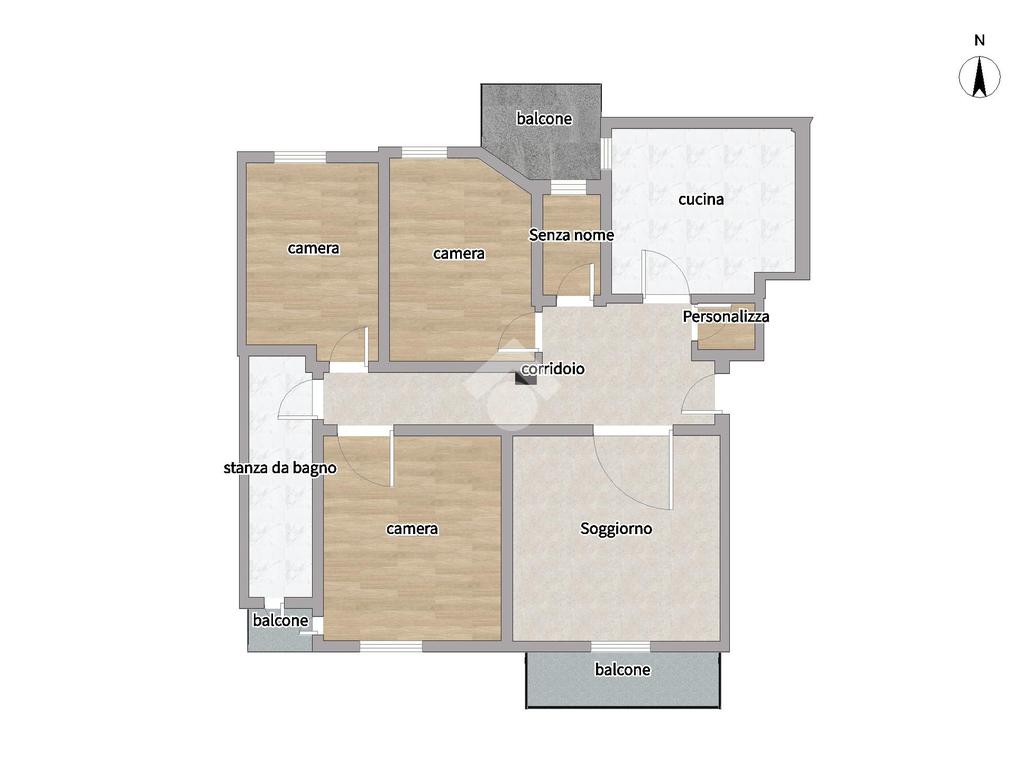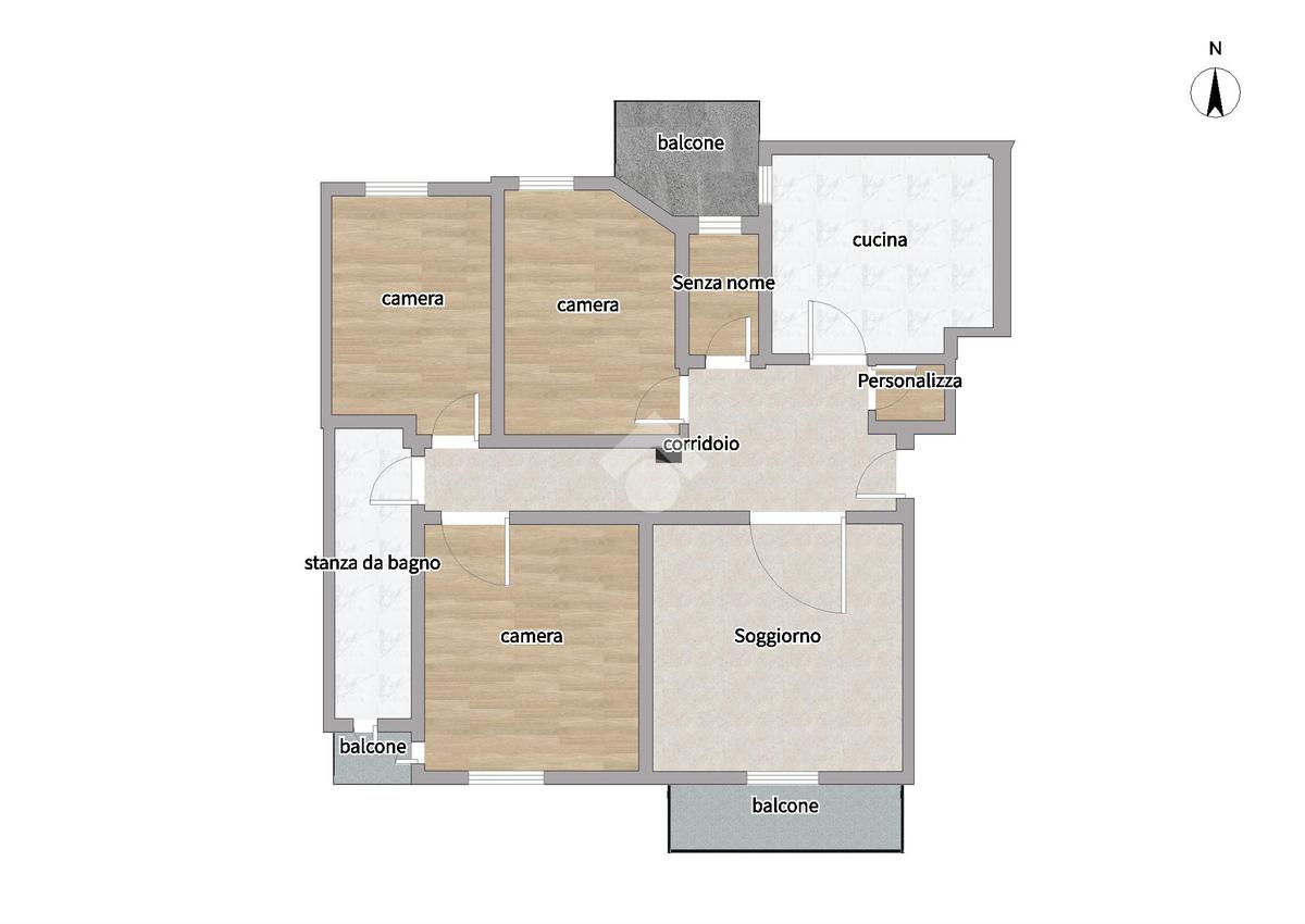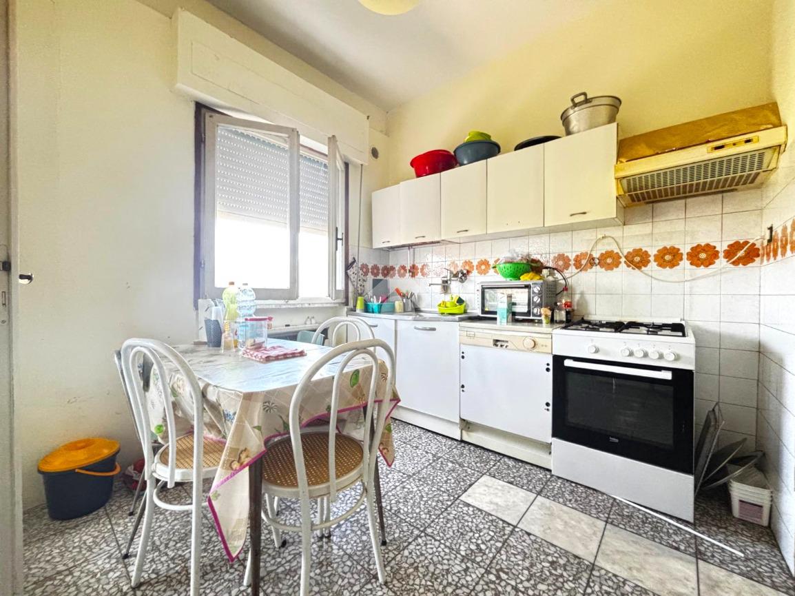 La cucina, separata e abitabile, si affaccia su un balcone semiabitabile, ideale per momenti all’aperto o per un angolo verde.