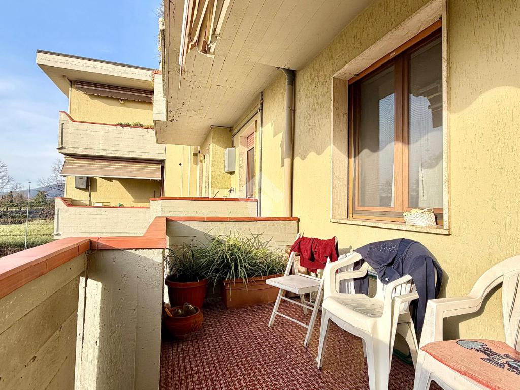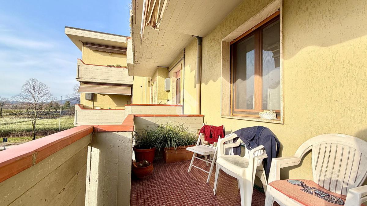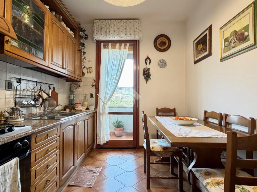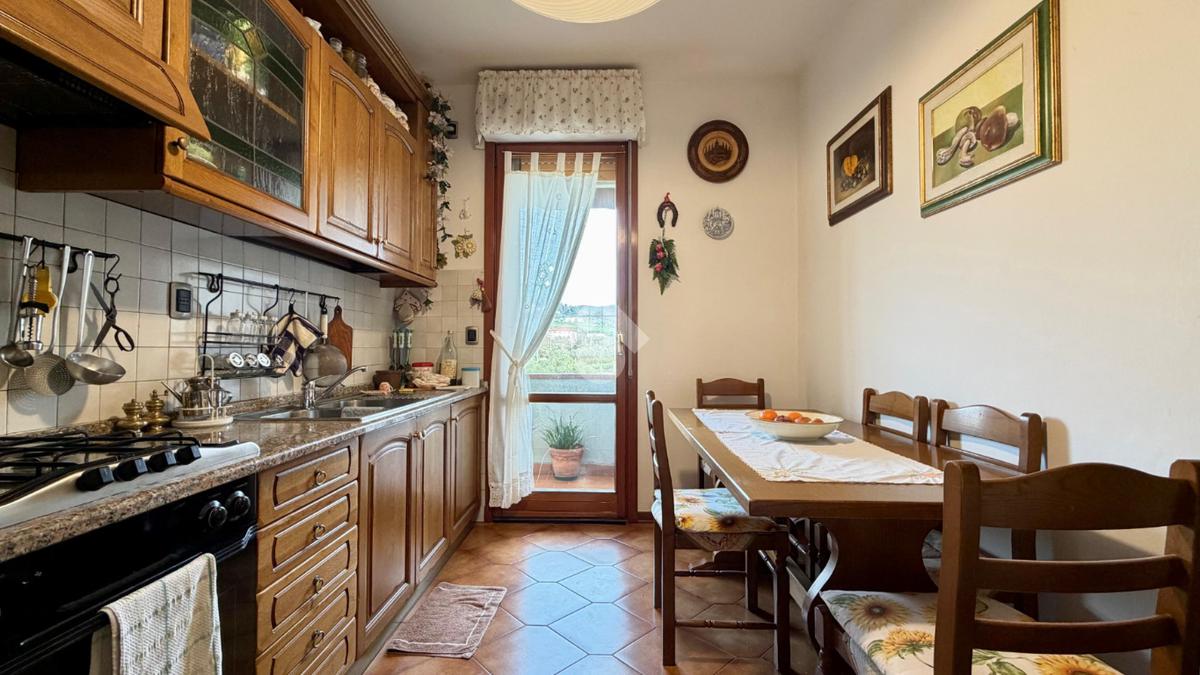 L’immobile si compone di ampio soggiorno con terrazzo, cucina abitabile con accesso al balcone, due camere da letto e servizio finestrato. Il terrazzo semiabitabile rappresenta uno spazio ideale per momenti di relax, impreziosito da una splendida vista panoramica sulle colline di Germinaia.