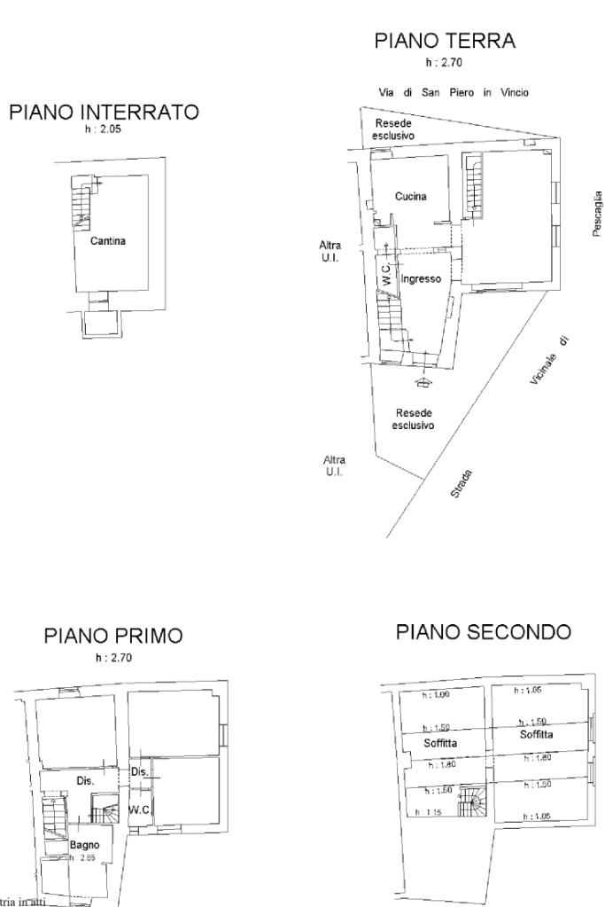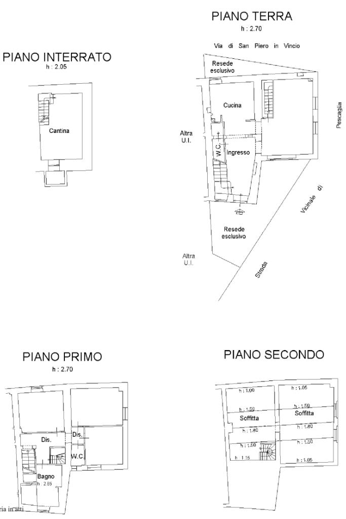 Piano terra: ampio soggiorno con camino in pietra, cucina abitabile e bagno con doccia.