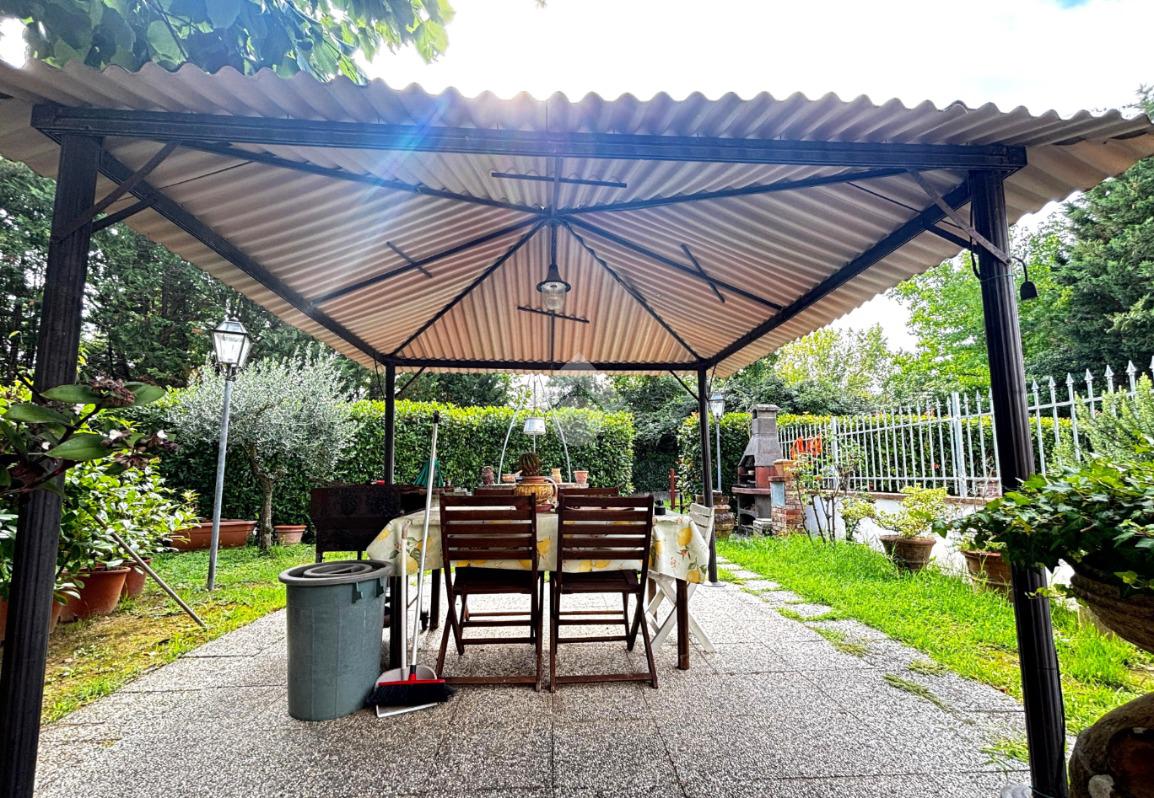 La casa è circondata da un giardino privato, in parte carrabile, arricchito da un pratico barbecue in muratura, ideale per pranzi e cene all’aperto in compagnia, in un contesto di assoluta tranquillità.