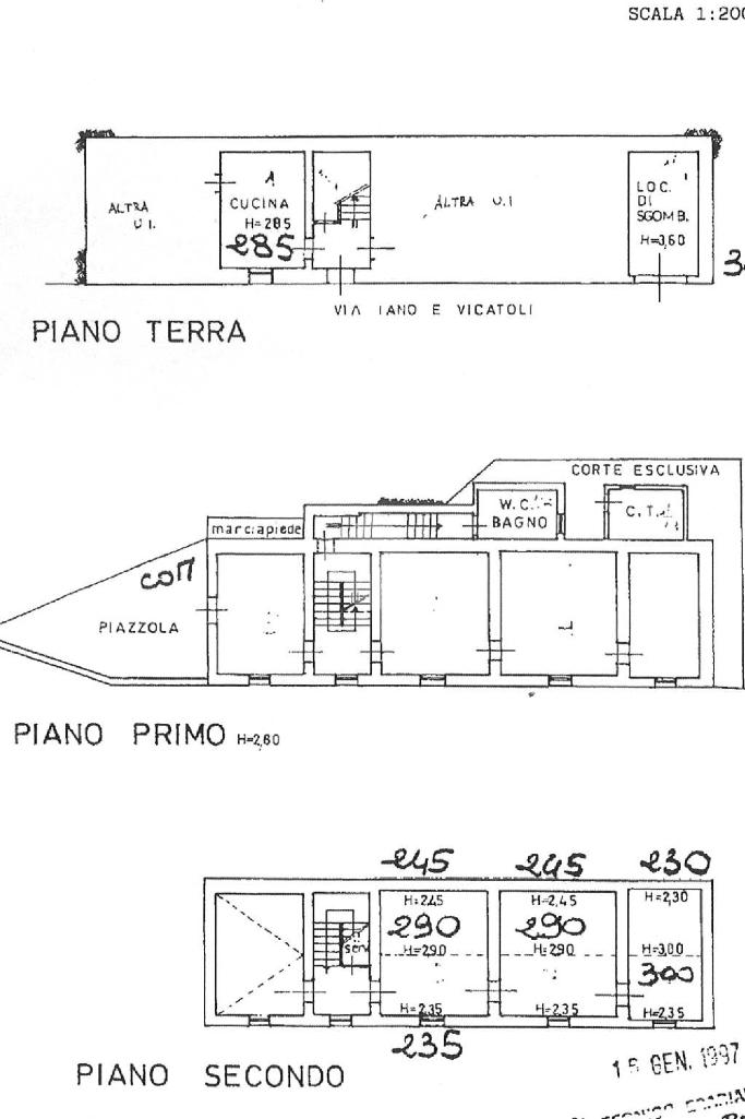 Al piano terra si trovano una cucina, un disimpegno, un doppio soggiorno e un ripostiglio. Il primo piano è composto da ingresso, cucina, ampio soggiorno, spaziosa camera matrimoniale, servizio e studio.Al secondo e ultimo piano sono presenti una camera da letto, un altro soggiorno, un’ulteriore camera matrimoniale e uno studio.