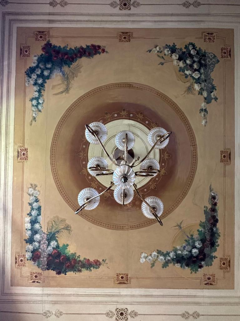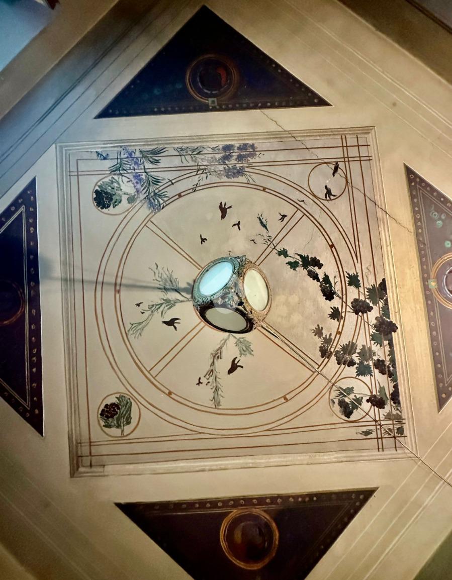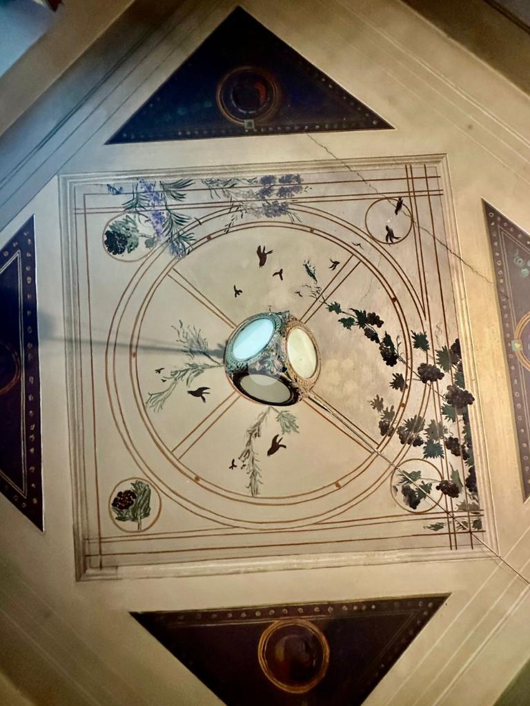 La villa conserva affreschi storici e soffitti finemente decorati, elementi di grande valore artistico che ne esaltano il fascino e la storicità.