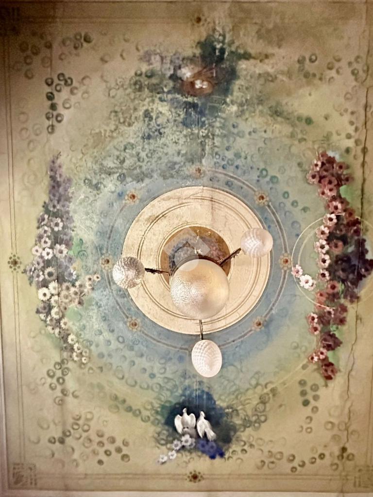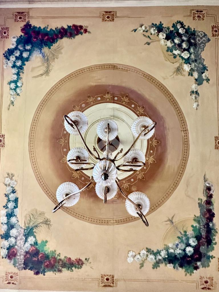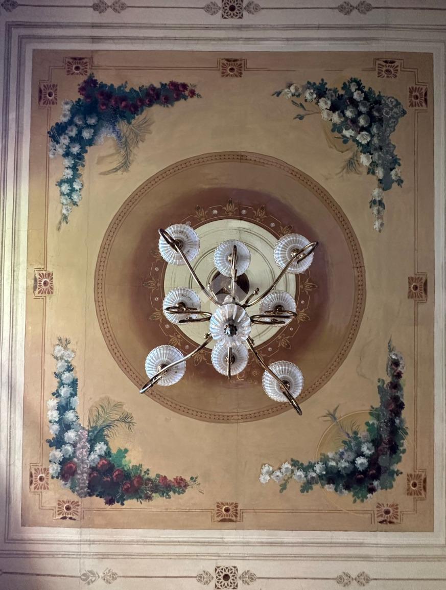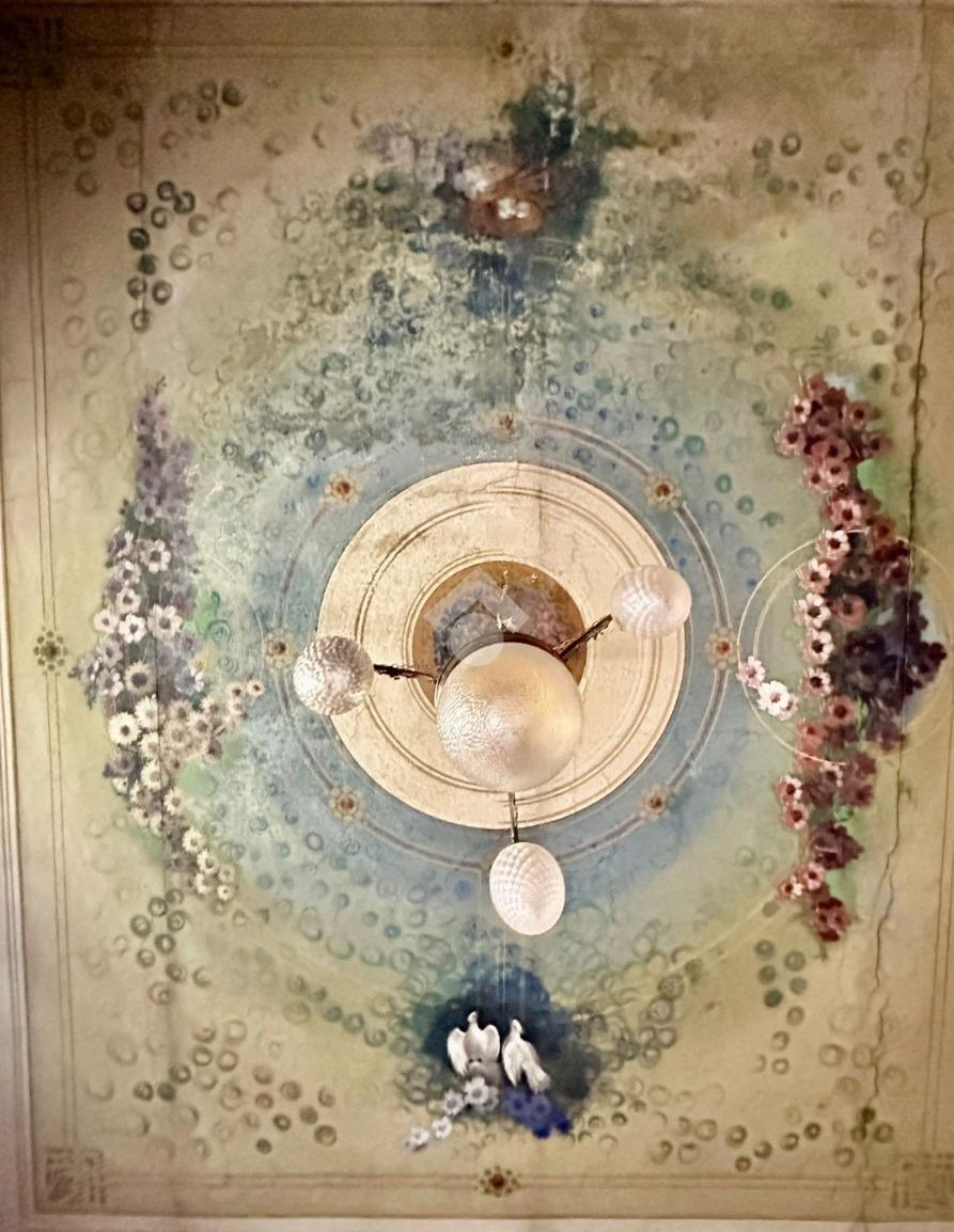 La villa conserva affreschi storici e soffitti finemente decorati, elementi di grande valore artistico che ne esaltano il fascino e la storicità.